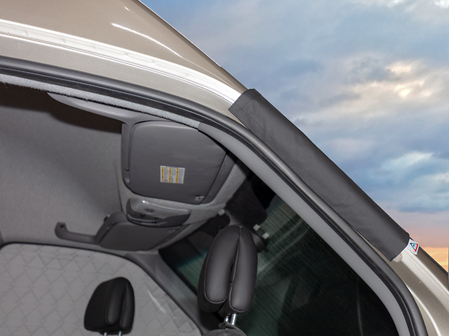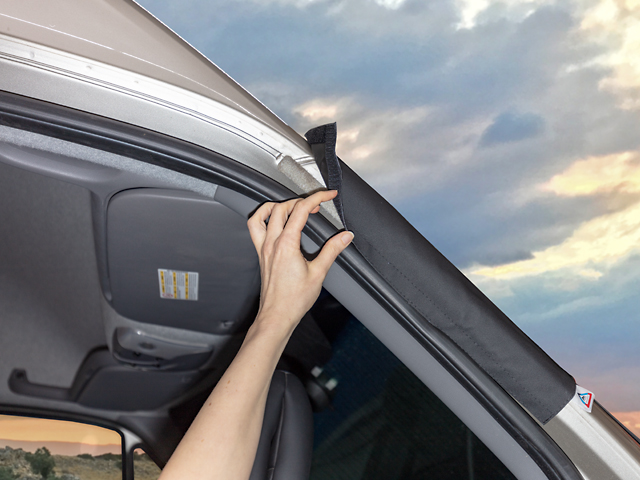 ISOLITE Outdoor fits exactly and is simply placed onto the windscreen and on the insided fixed to the A-pillar with hook-and-loop fastener.