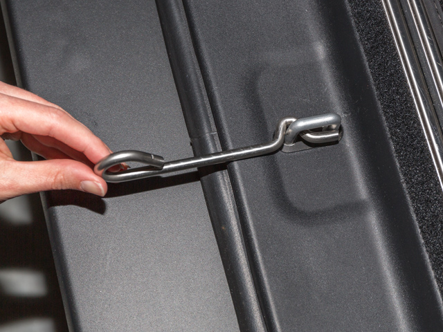 AIR-SAFE is simply hooked into the upper closure bail and clicked into the lower one.
