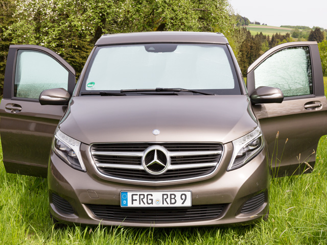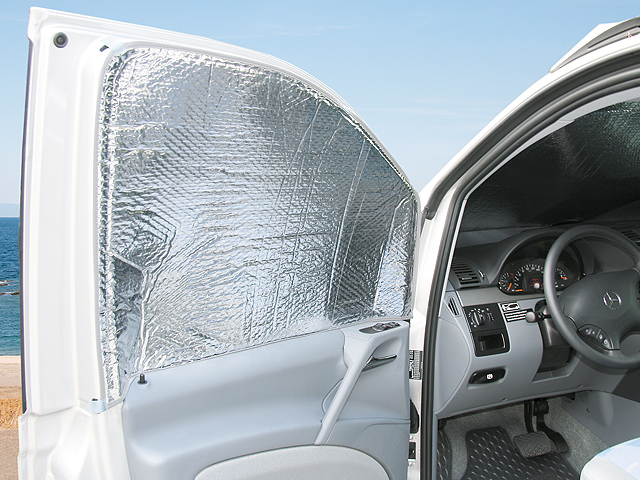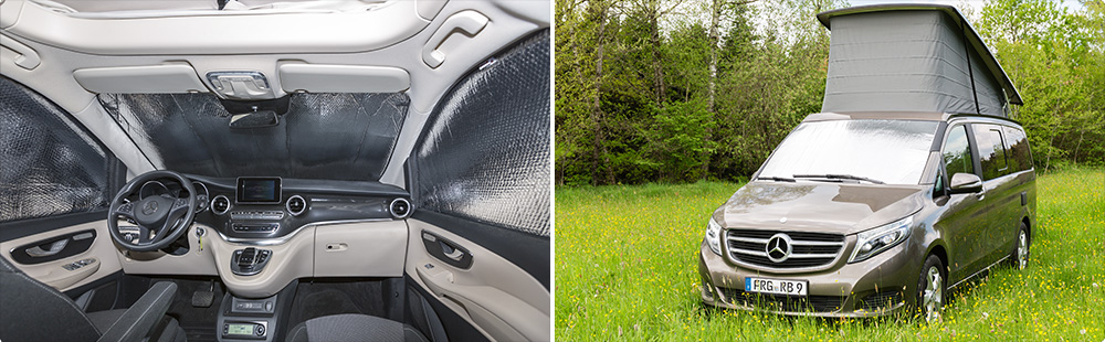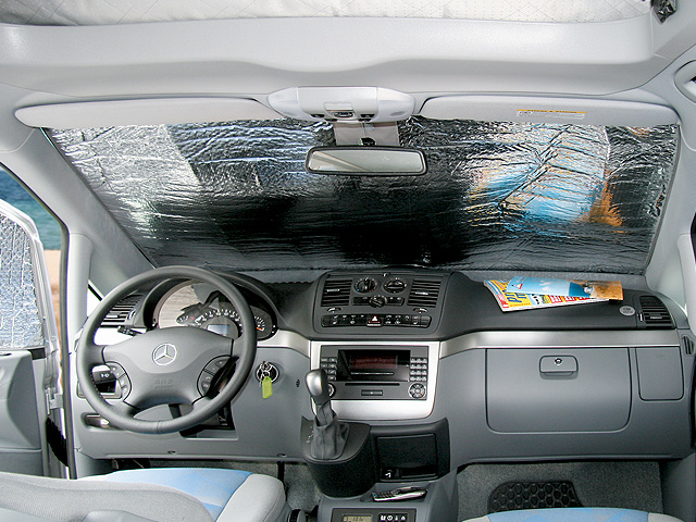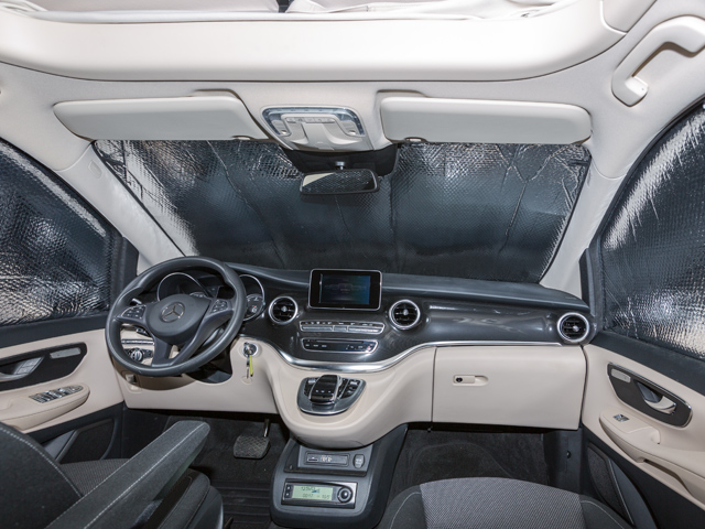ISOLITE Inside for the cabin windows is available for all Mercedes-Benz Viano models. In summer, the solar heat is reflected outwards. The interior reflecting lamination preserves the cold air inside the vehicle longer.