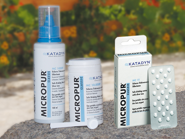 Micropur is available as liquid for 1.000 litres, powder for 10.000 litres or tablets for 100 litres of water.