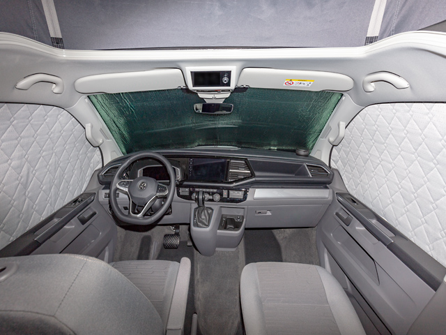 The "sandwich material" consists of the proven ISOLITE material, a flame-retardant special thermal fleece, and the elegant, flame-retardant original VW T7 California blackout fabric: insulation, functionality, and a pleasant indoor climate are all optimal.