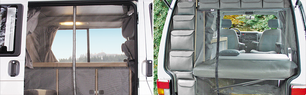 The close meshed net for the hinged window is attached with hook-and-loop fastener.