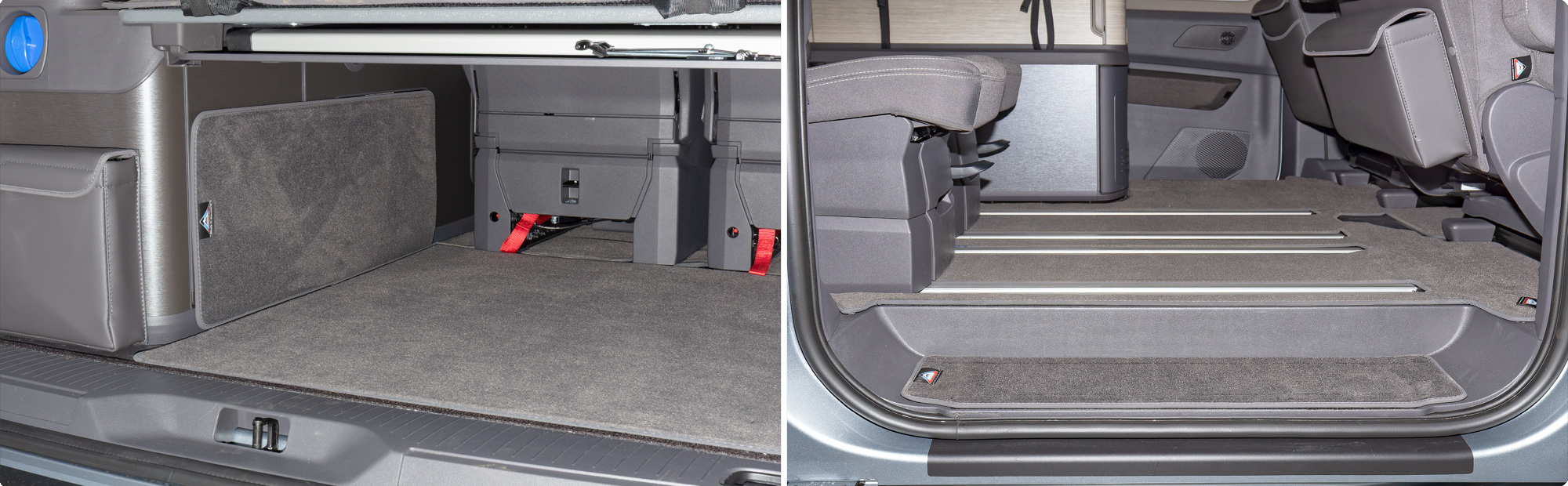 Velour carpet 2-piece for the steps in the passenger compartment VW T7 California Beach / Multivan, design: "Raven"