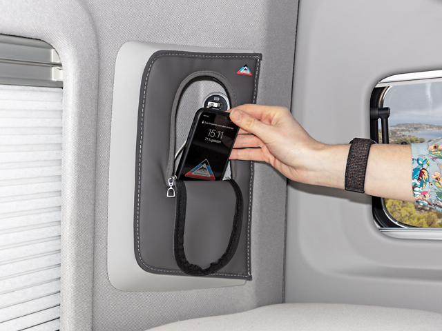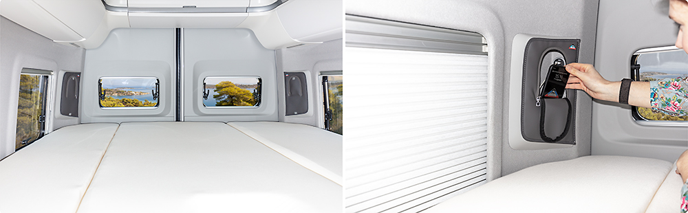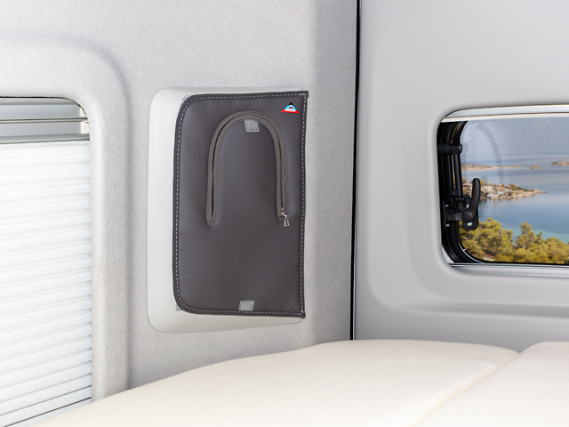 4TOP le couvercle des cavités/alvéoles de rangement ouvertes dans les montant D dans le Grand California 680 VW, design « Palladium Cuir »