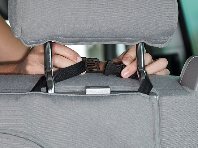 Fixation inférieure : par fermeture contact auto-agrippante sur le couvre-coffre ainsi qu’au dos de la banquette. Le passage à gauche de la banquette 2 places pour le chargement des skis reste libre d’accès.