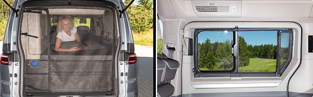 Le système FLYOUT pour fenêtres coulissantes offre une protection optimale contre les insectes tout en préservant une vue imprenable sur l'extérieur. Grâce au système FLYOUT, toute la surface de la fenêtre ouverte est disponible, permettant ainsi une ventilation optimale du véhicule.