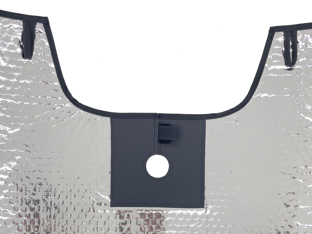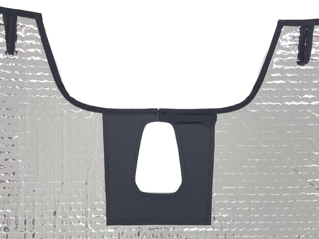 ISOLITE Inside s‘encastre simplement dans l‘encadrement du pare-brise et il se fixe dans la partire supérieure du pare-brise (la bande noire en haut de la vitre) ainsi qu‘au rétroviseeur intérieur par des fermetures contact auto-agrippante.