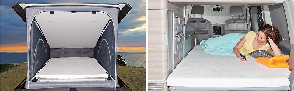 lits pliants iXTEND et le matelas du toit relevable des modèles California sont très ajustés.
