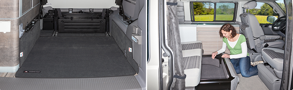 Tapis pour l’espace de chargement du coffre T6 / T5 VW California Ocean, Coast, Confortline,