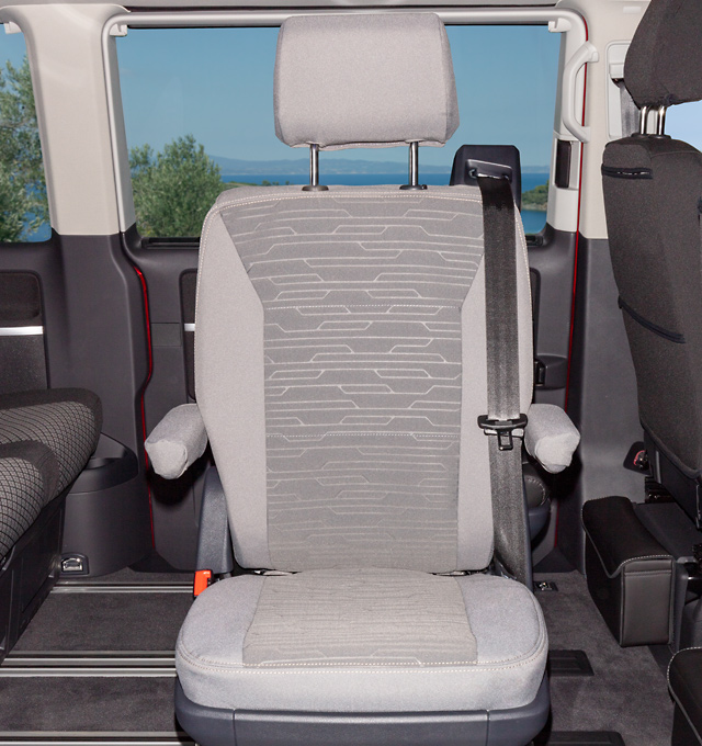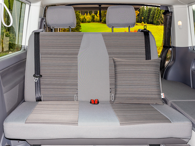 Les housses Second Skin® correspondent au coloris du California Coast / California Beach T6.1 VW; elles sont fabriquées dans les tissus d’origine de Volkswagen, complètes avec les housses d’accoudoirs et d’appuie-tête.