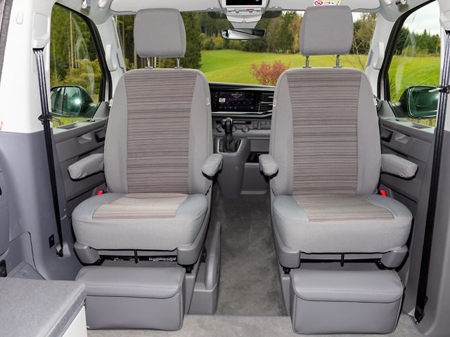 Les housses Second Skin® correspondent au coloris du California Coast / California Beach T6.1 VW ; elles sont fabriquées dans les tissus d’origine de Volkswagen et complètes avec les housses d’accoudoirs et d’appuie-tête.