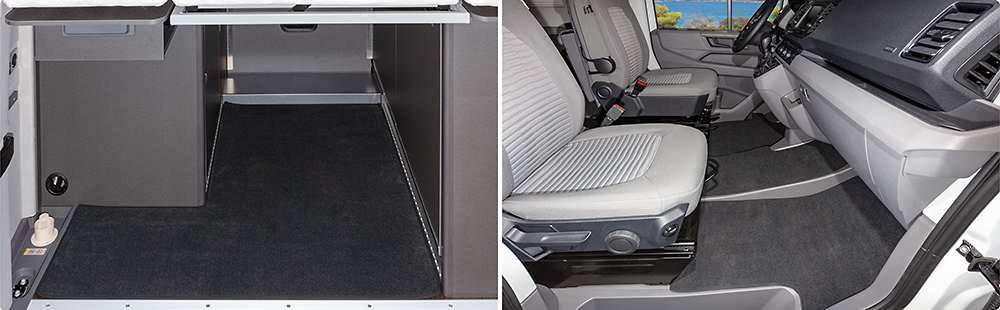 Tapis en velours set de la cabine conducteur Grand California VW sans chauffage auxiliaire à air supplémentaire, jusqu'en 2021, design « Noir Titane »