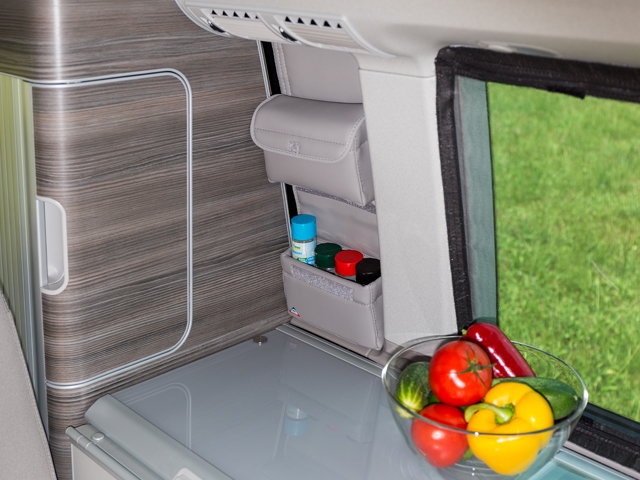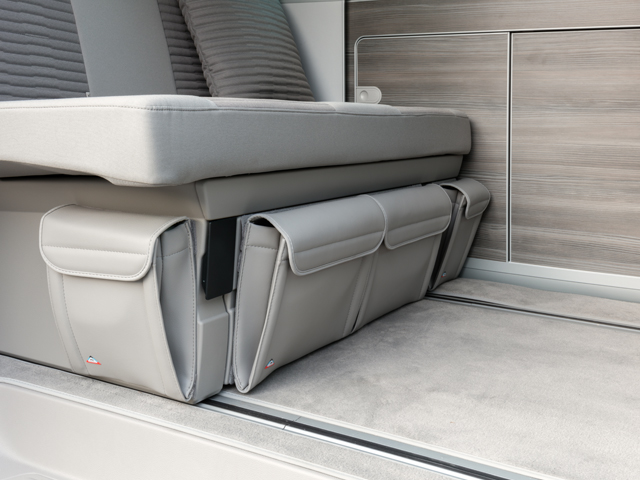 UTILITY coffre sous le lit (2 places), pochette latérale (droite) du coffre sous le lit California Ocean / Coast / Confortline / Beach T6 / T5 VW, design T6 VW « Gris Moonrock Cuir » – jusqu'à épuisement des stocks