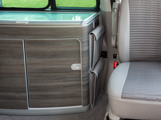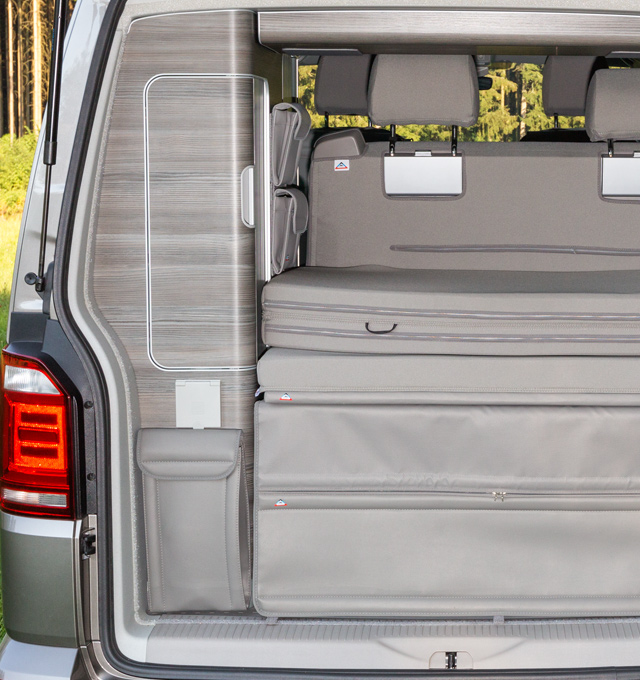 UTILITIES pour le coffre sous le lit California Ocean / Coast / Confortline / Trendline T6 / T5 VW , design « Gris Moonrock Cuir »