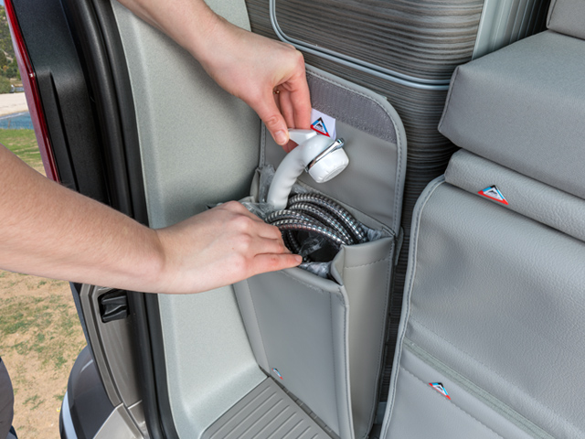 Pochettes de rangement pour le coffre sous le lit : une pochette côté trappe à skis ; deux pour le devant ; pochette pour l’avant gauche du coffre.