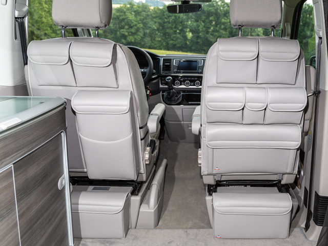 UTILITY coffre sous le lit (2 places), 2 pochettes pour le devant California Ocean / Coast / Confortline / Trendline / Beach T6 / T5 VW, design T6 VW « Gris Moonrock Cuir » – jusqu'à épuisement des stocks